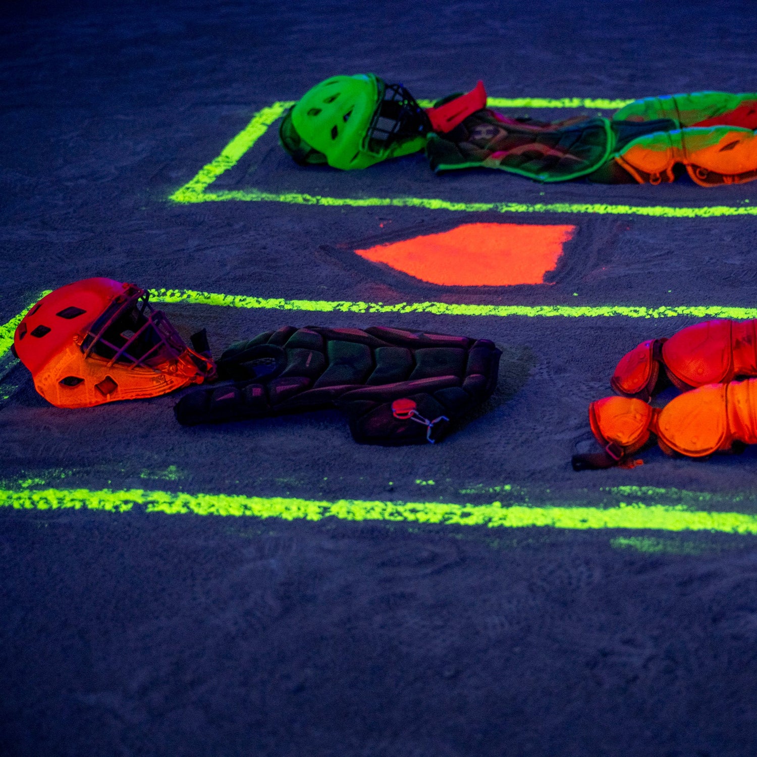 All the signature GlowBall rules apply: teams play with 4 outfielders, the pitcher delivers from beside an L-screen, and if a batted ball strikes the screen, it stays live and playable. Hit a foul ball that leaves the field? That’s a strike against your at-bat. And if a fan catches a fly ball, it’s an out — yes, for real. There’s no walking, no whining, and no room for slow energy. The GlowBall Adult League is built for big swings, loud dugouts, and custom gear that glows in the dark. Players are encouraged to show up in style — glowing cleats, neon tape, bright jerseys, face paint, and accessories that shine under the lights. It’s part game, part party — and all GlowBall.
