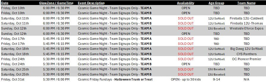 Our events are expected to sellout with hundreds of locals in attendance, and baseball and softball teams from across the region traveling in for the full weekends. Daytime games during traditional bracket play but after 6pm, the grounds start to turn into a glowing night event like no other, with the main GlowBall games kicking off once the sun sets.